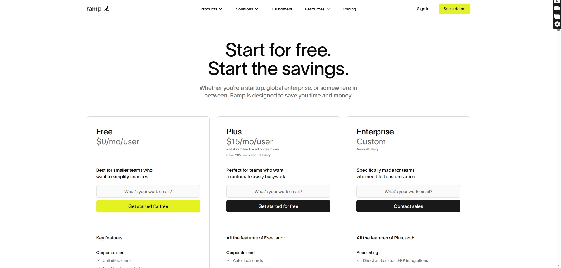 Pricing: Free (Ramp earns on card interchange)