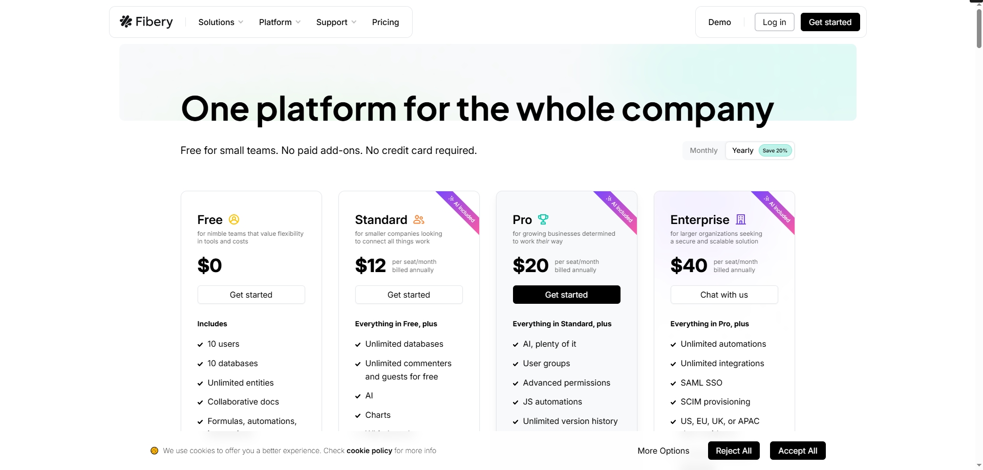 Pricing: Free tier with limited AI credits; paid plans from $10/month/user